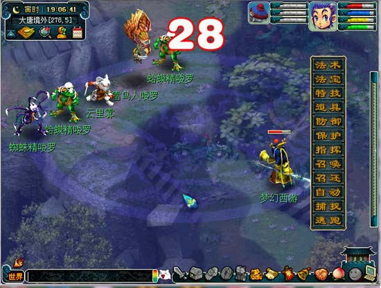 4. 长寿郊外找铁扇公主,触发战斗,这里是必定失败的,不过没有损失,第二次战斗比较容易,三个人可以过,会得到假芭蕉扇。
