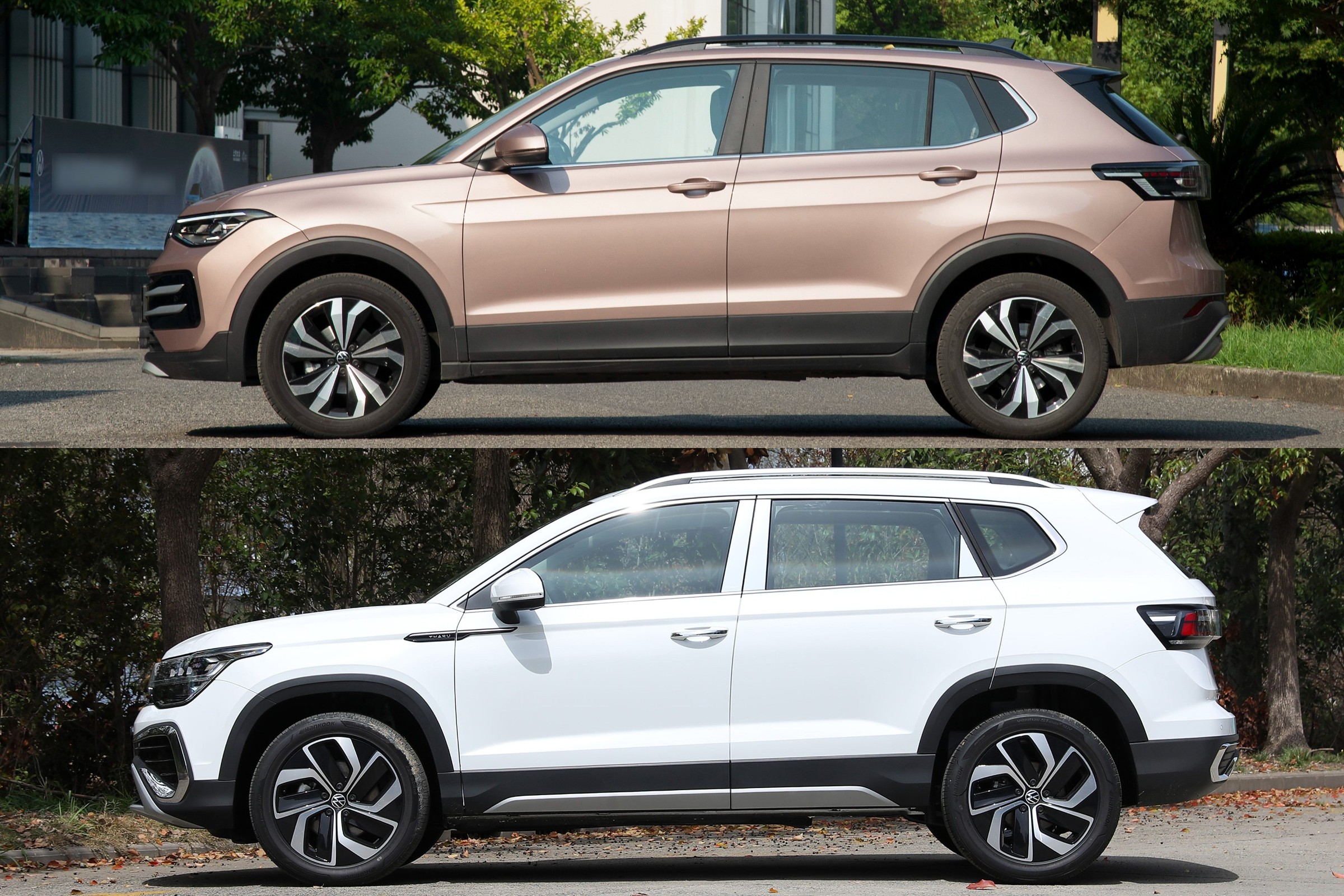 因为定位比2024款途岳略低,车身尺寸缩水了一圈,后悬挂从多连杆降为扭力梁,轮胎宽度从225mm降为205mm,沦为小型SUV水平(如本田缤智),但仍自称紧凑型SUV。