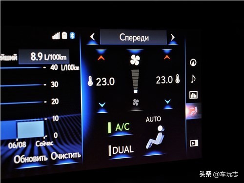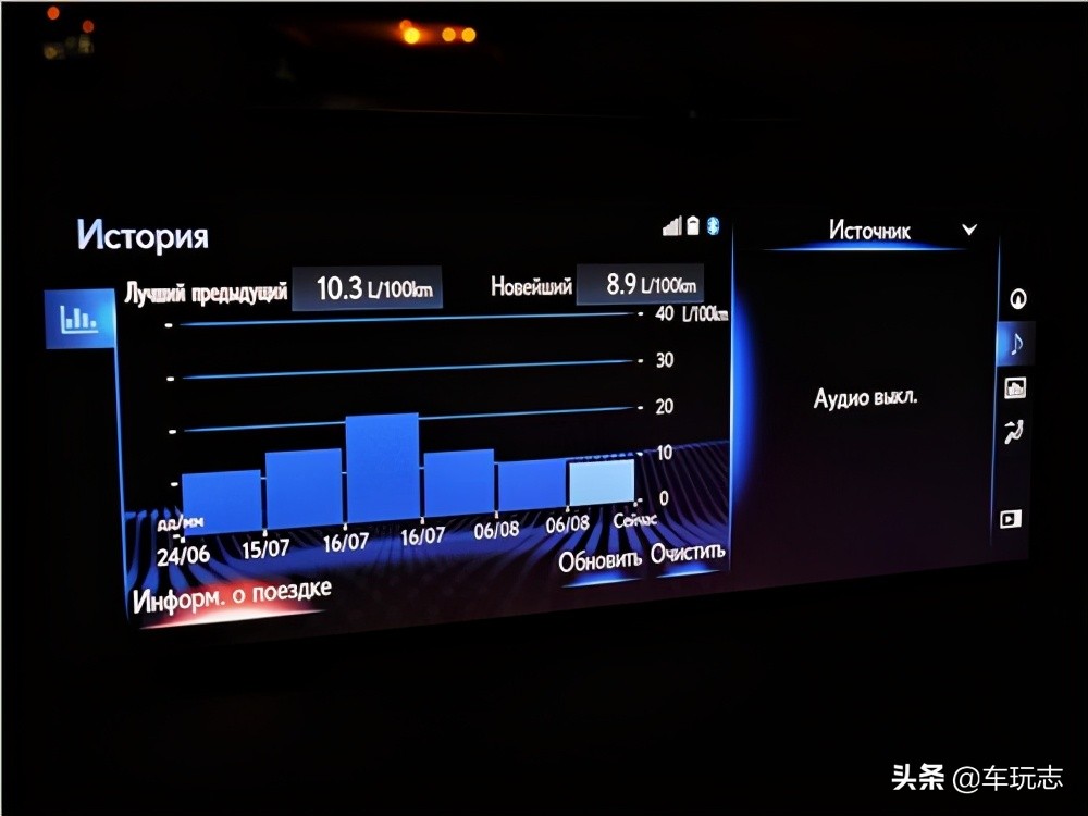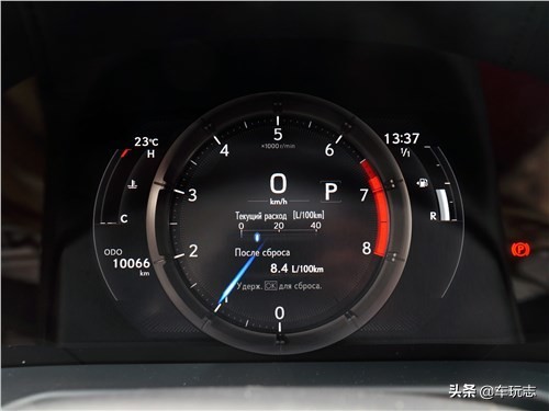车载计算机的一个有趣功能是齿轮刻度。所选步骤的编号出现在虚线上方,并显示其变化。值得注意的是,这里的“八”极少出现,主要是ES在低档之间的平衡,即使是在郊区道路上行驶。至少“踩”一下“油门”踏板,然后立即降低一个、两个甚至三个单位的步骤。