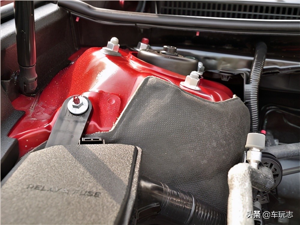 发动机舱左侧的物品。有趣的是,发动机控制单元的支架同时起到将“质量”传递给车身的作用