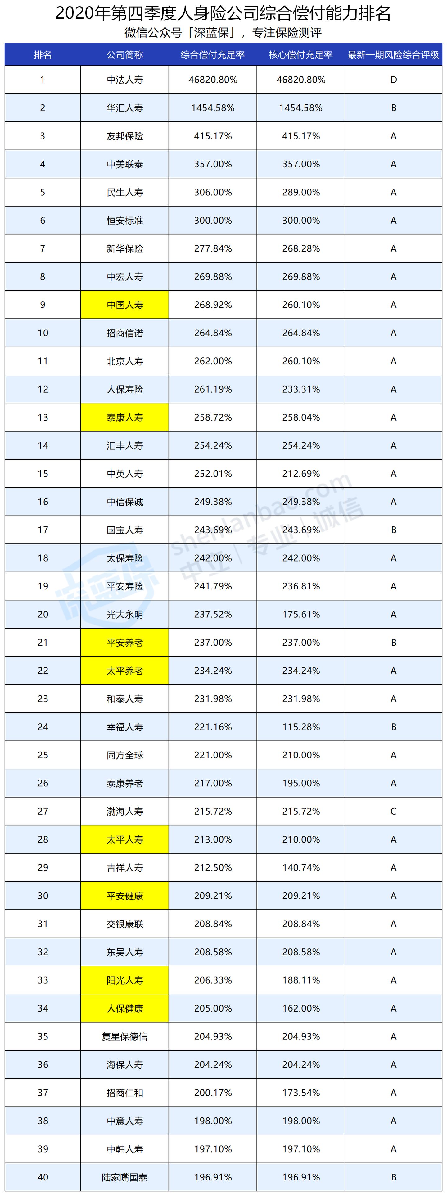 整理了2020年第四季度的综合偿付能力前40名数据: