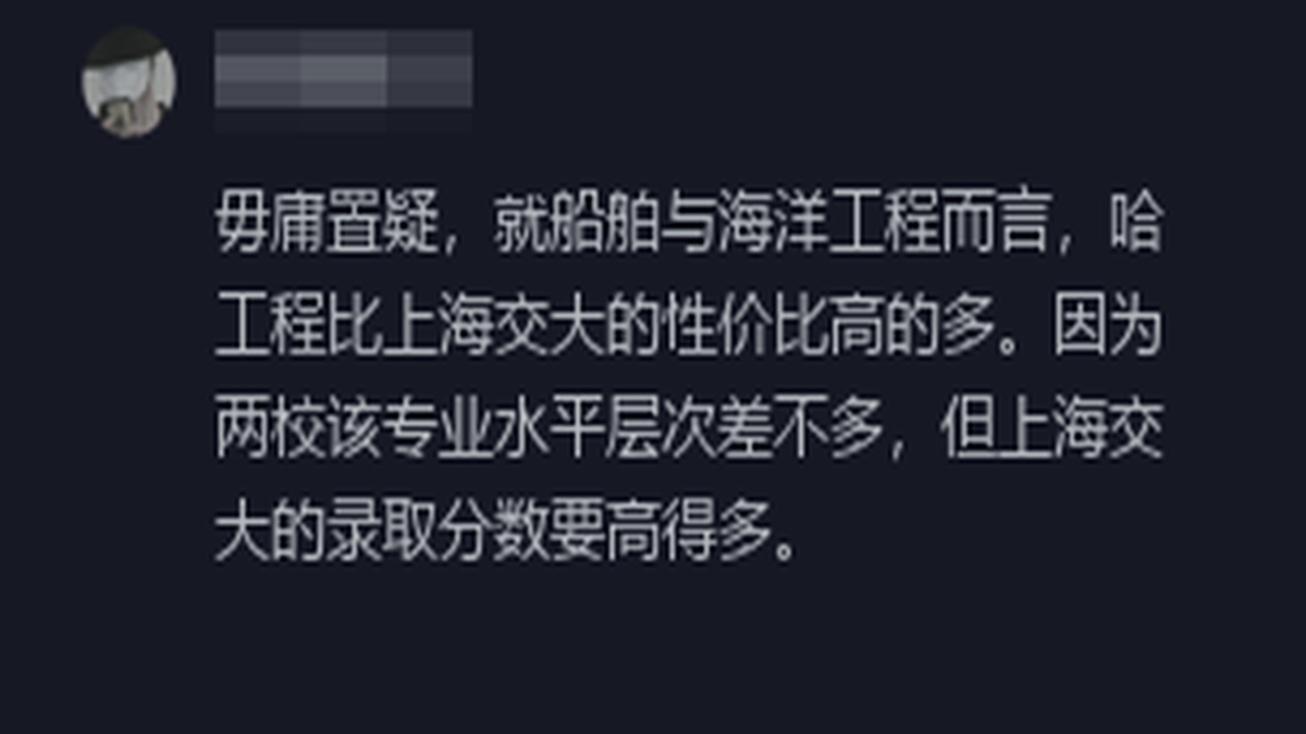 在这场性价比的较量中,我们看到了网友们对两所高校船舶与海洋工程专业的不同看法。无论是上交大的高端大气上档次,还是哈工程的性价比高接地气,都反映了当前社会对于高等教育多元化、特色化发展的期待。在这场没有硝烟的战争中,没有绝对的胜者,只有更适合自己的选择。正如那句老话所说:‘适合自己的才是最好的。’