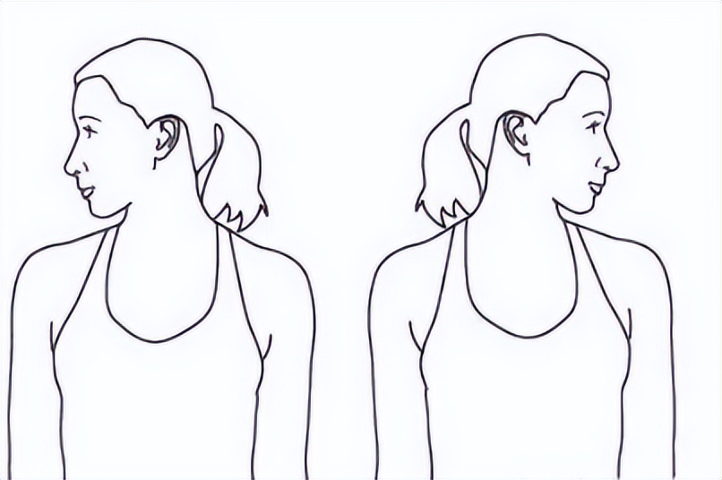 保持头和躯干在一个平面内,向右转头,可以用左手来帮忙,让转的幅度更大。同理,换另一侧。