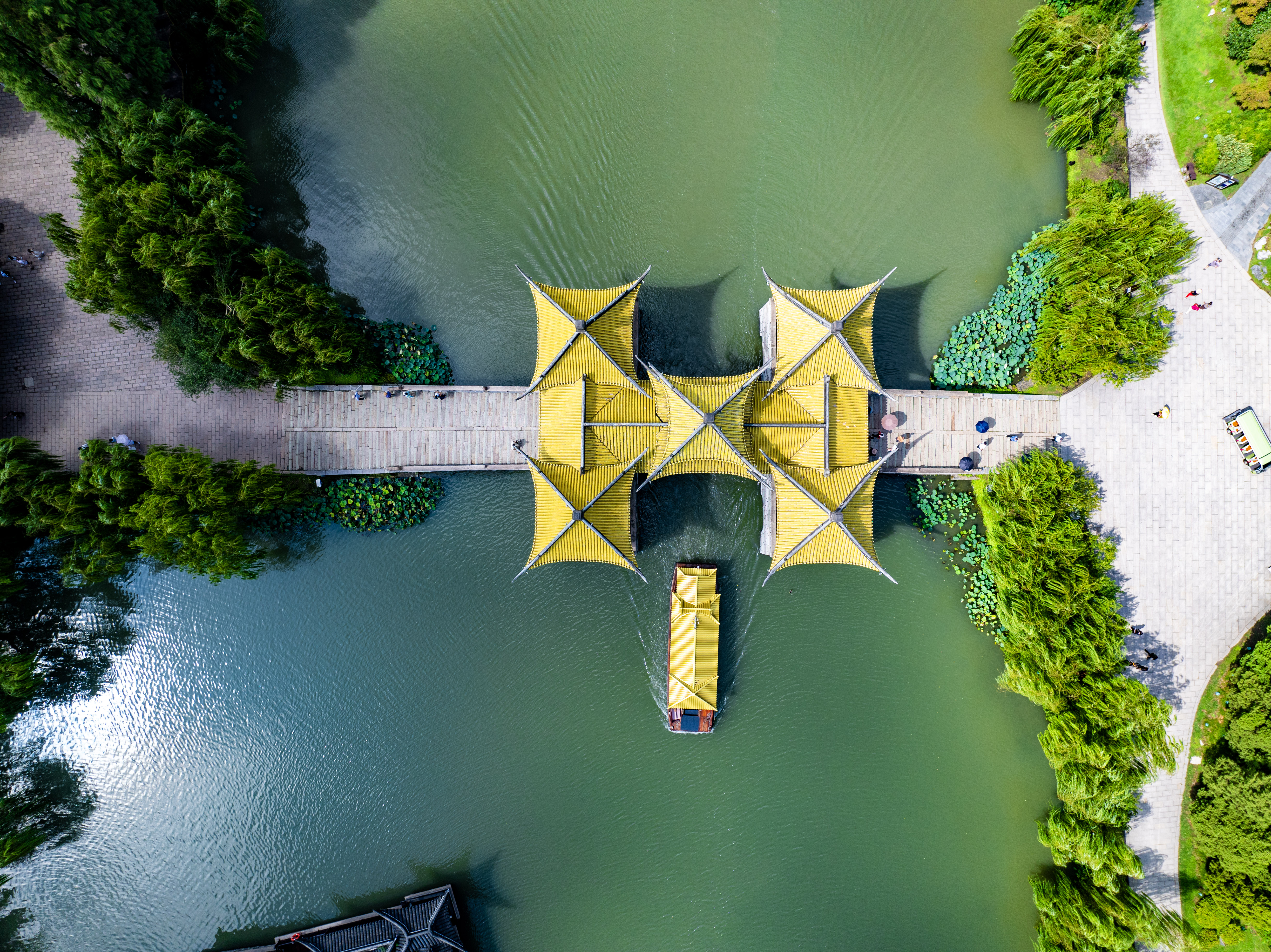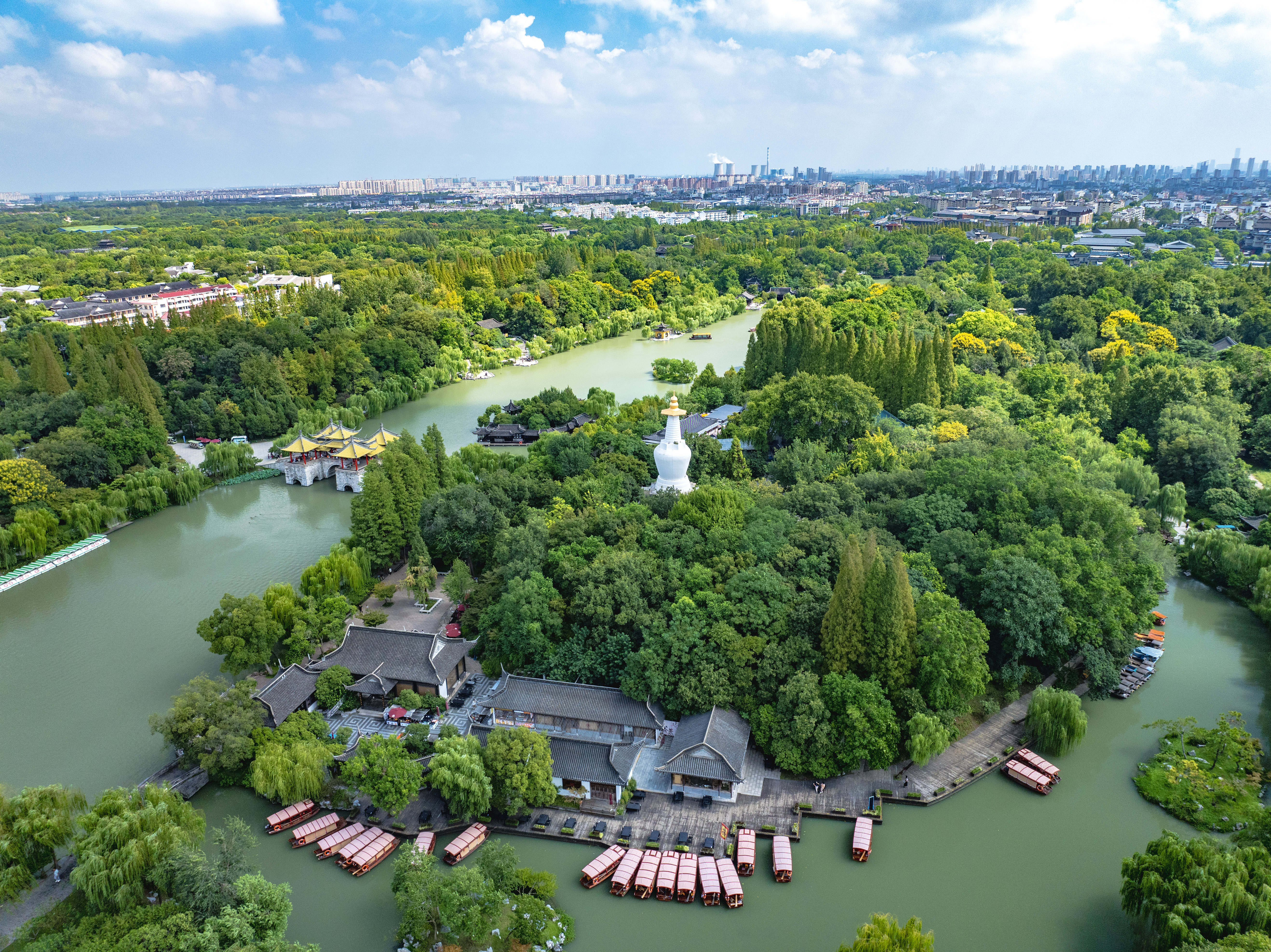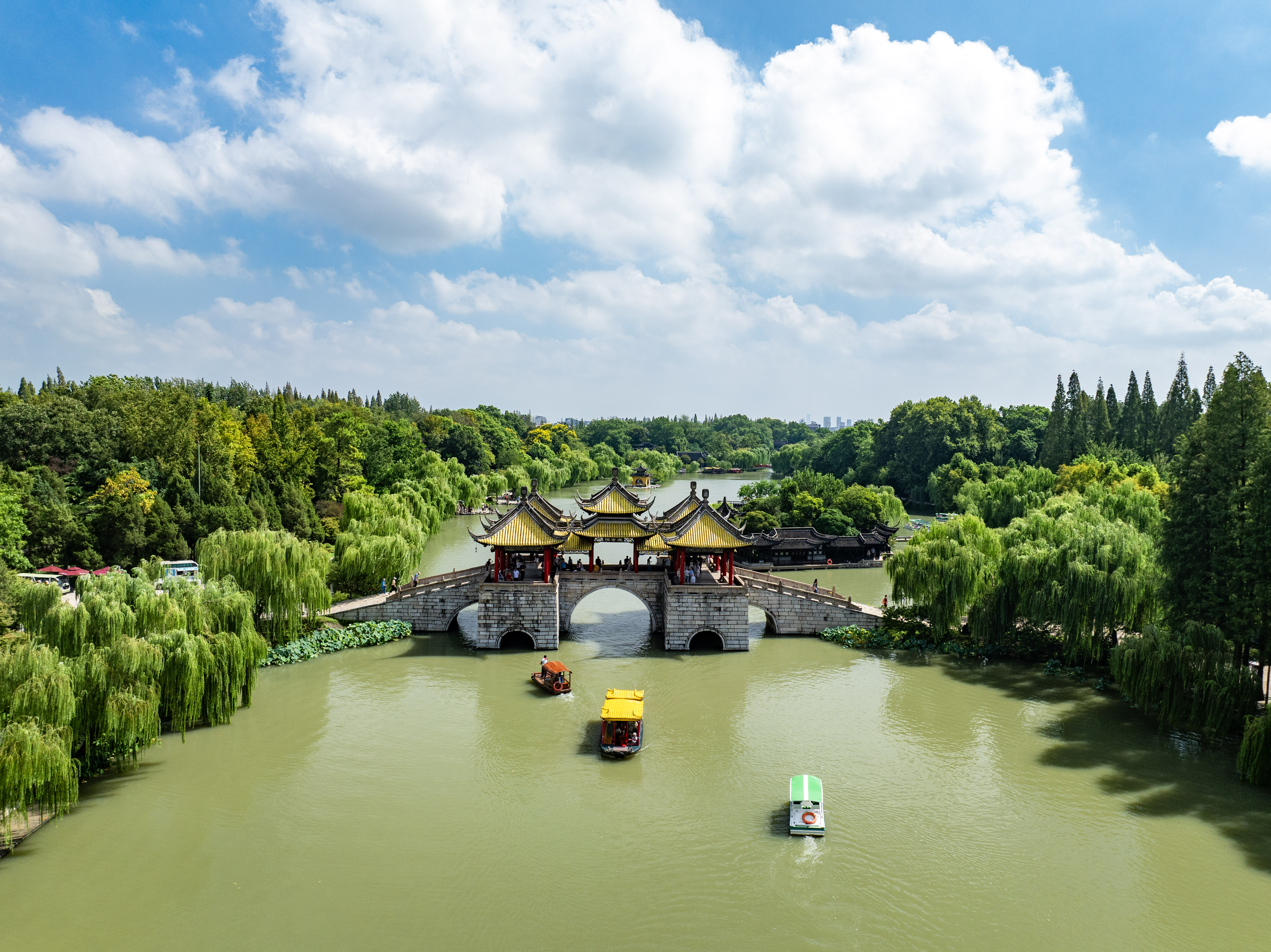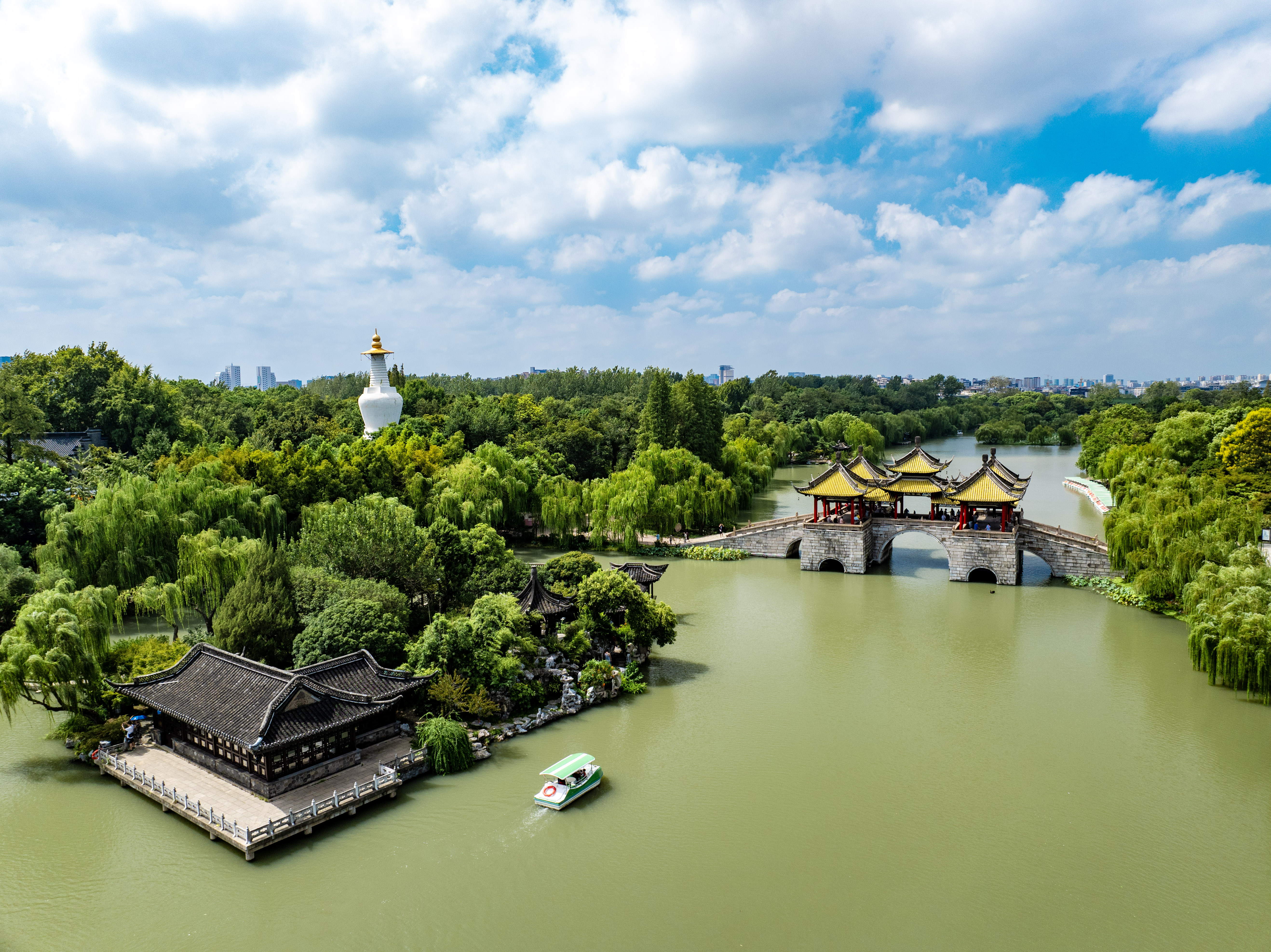 以上图片:2024年9月18日拍摄的江苏省扬州市瘦西湖风景区风光。(无人机照片)CICPHOTO/周社根 摄