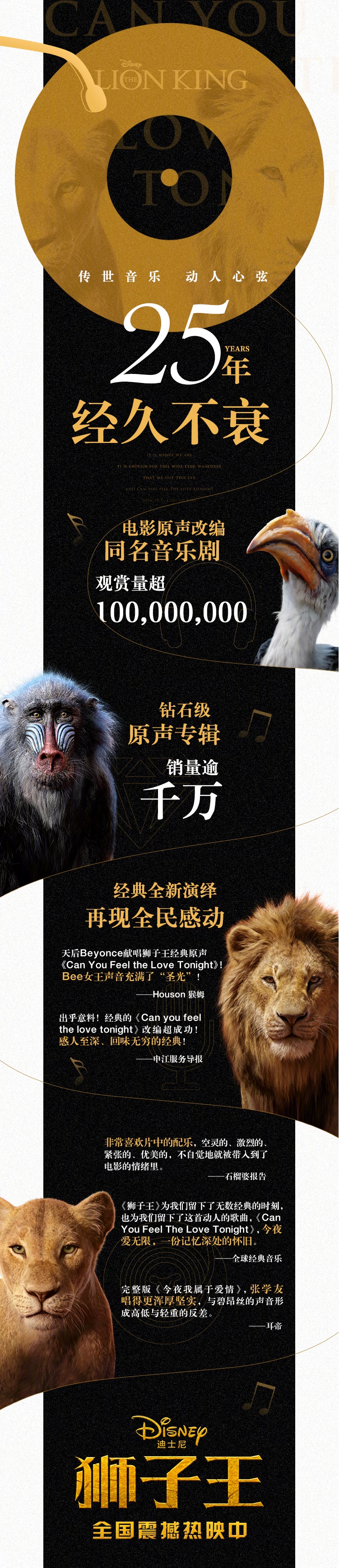 全新《狮子王》,由奥斯卡配乐大师汉斯·季默亲自操刀。一秒燃起鸡皮疙瘩的《生生不息》,彭彭丁满成名代表作《哈库那 玛塔塔》,浪漫爱情乐章《今夜我属于爱情》,哪一首是你最近的单曲循环?