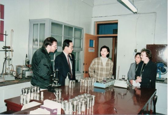 1995年博士毕业后,和庞文琴先生在实验室接待来访国际学者。