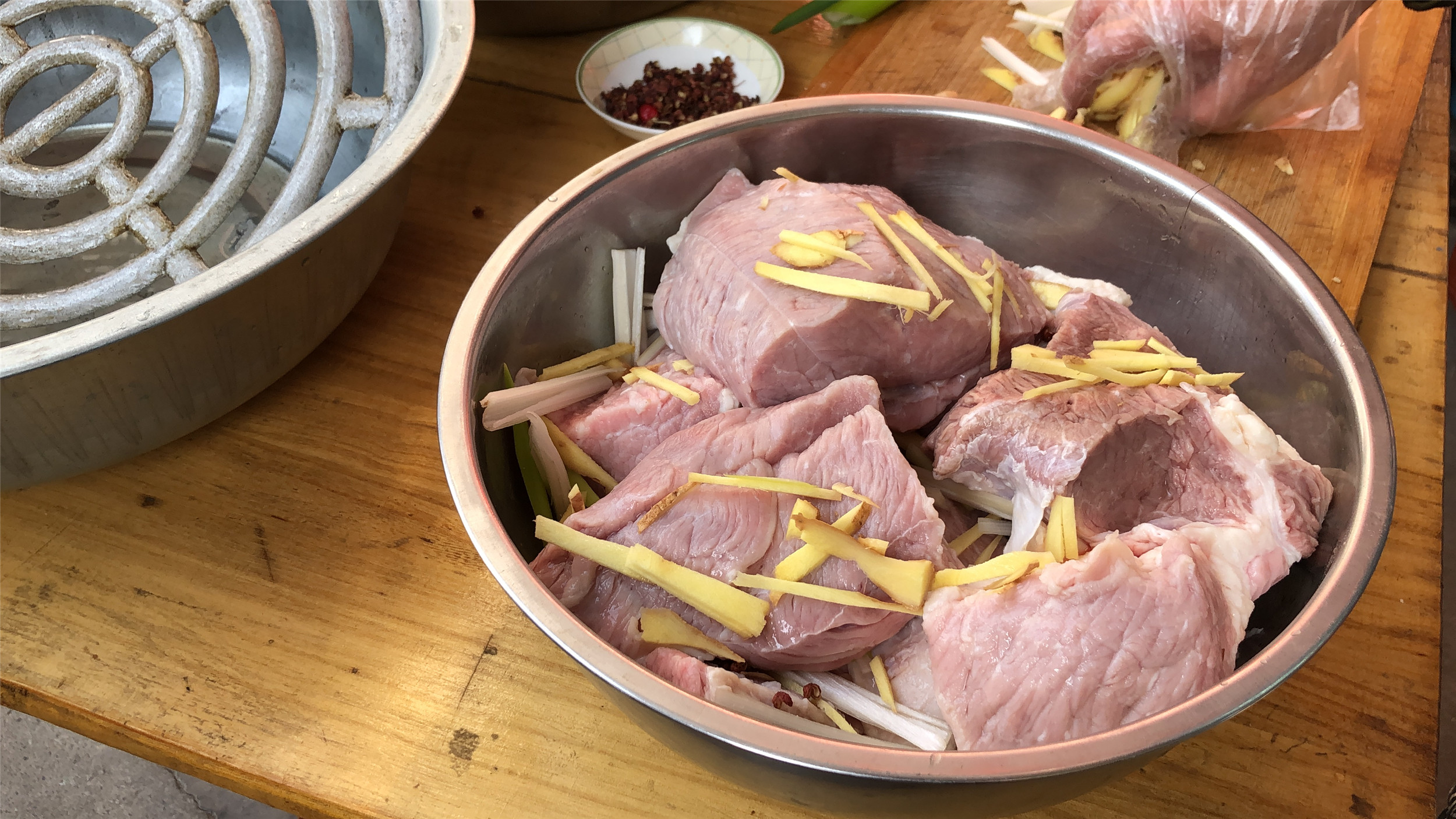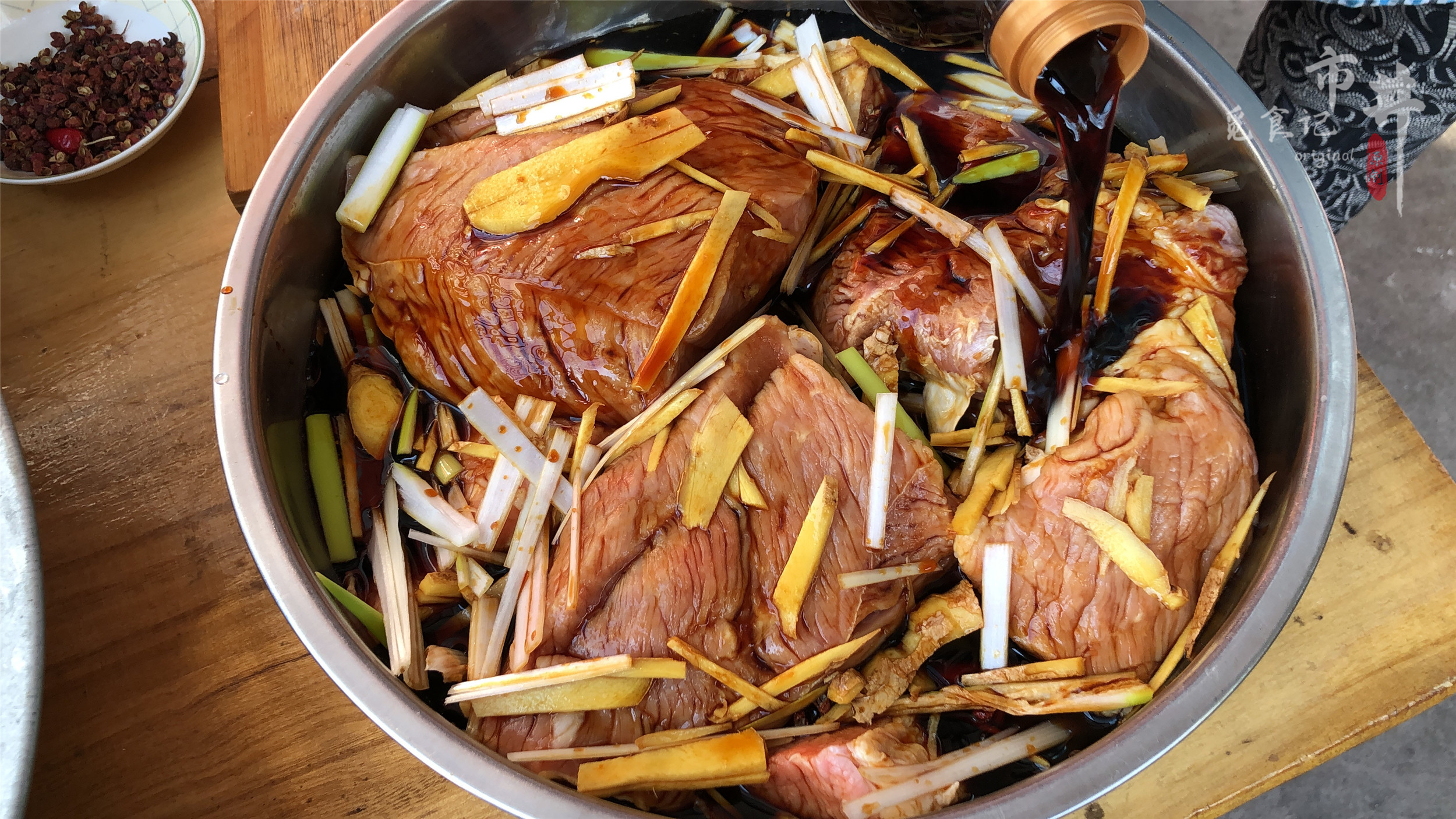 所用食材:牛后腿(或牛腱子肉)、味极鲜酱油、生姜、大葱、花椒