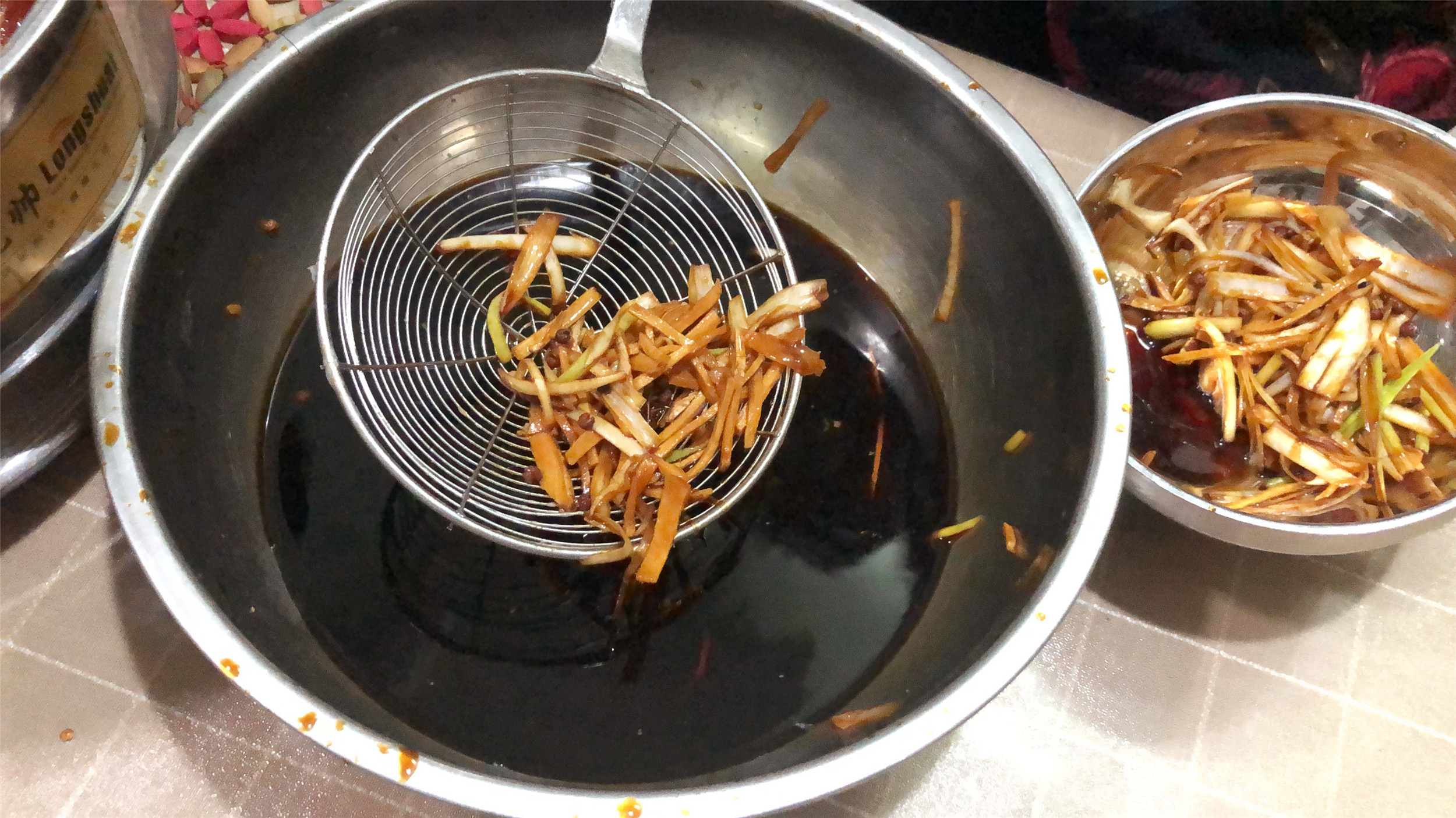 4、需要准备3样配料,适量的生姜、大葱切成丝,花椒一小把,另外准备一瓶味极鲜酱油,其他自己喜欢的酱油或者生抽也可以,5斤牛肉的用量大约也就是半斤,实际消耗的更少。
