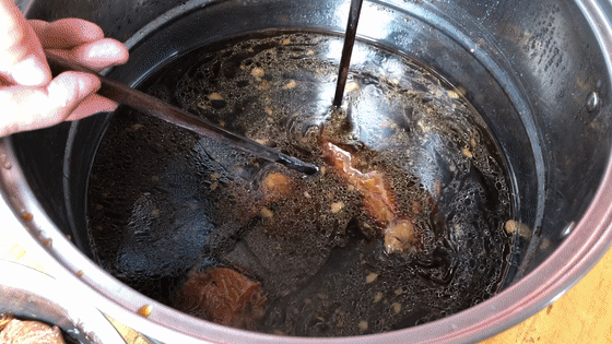 9、将腌料中所有的香料都过滤出来,只留下盆中的酱油。