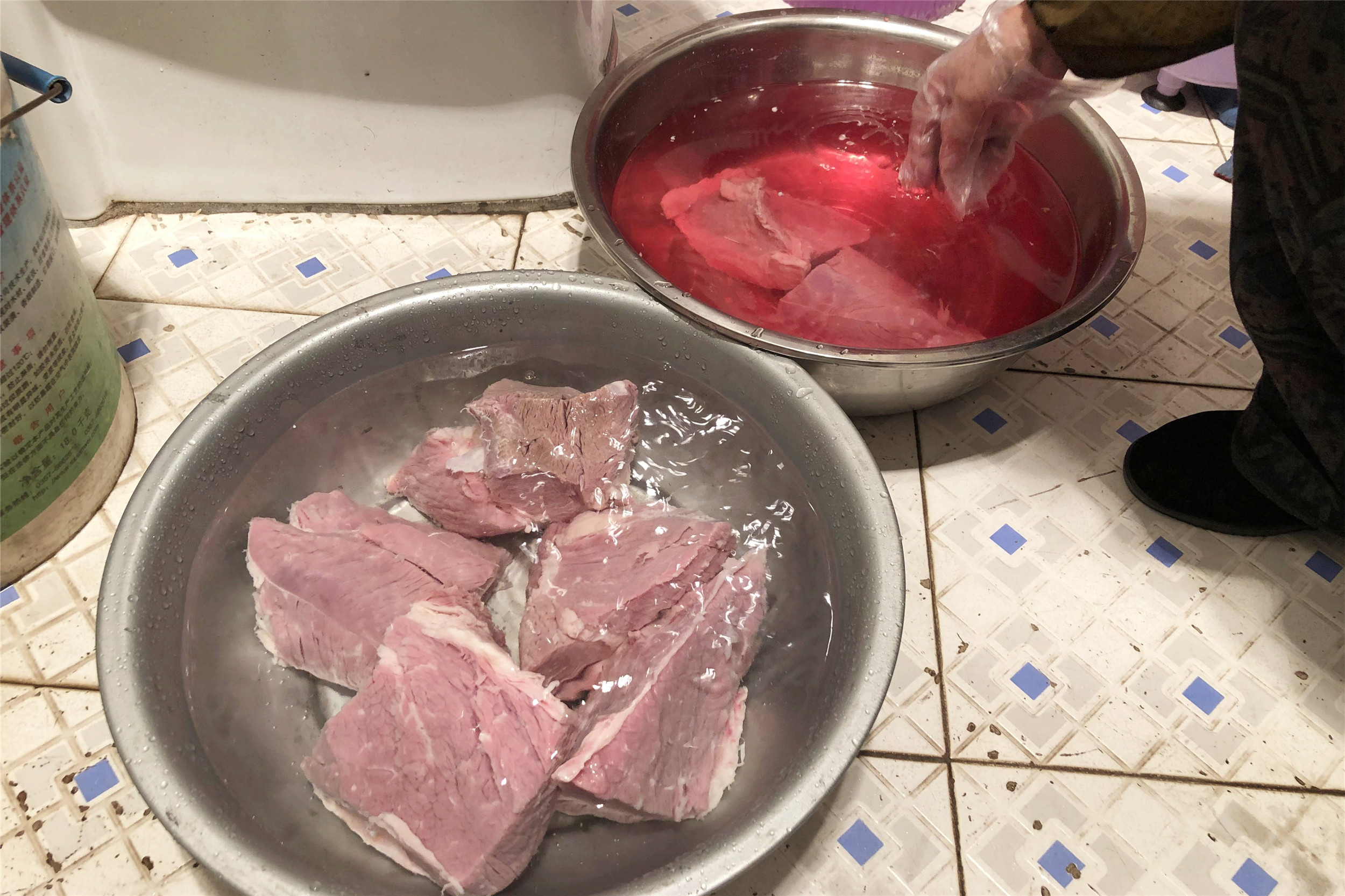 2、浸泡牛肉一定要注意换水,盆里的水大约4-6个小时左右就需要更换一次,夏天需要更换得勤快一些,避免牛肉变质。