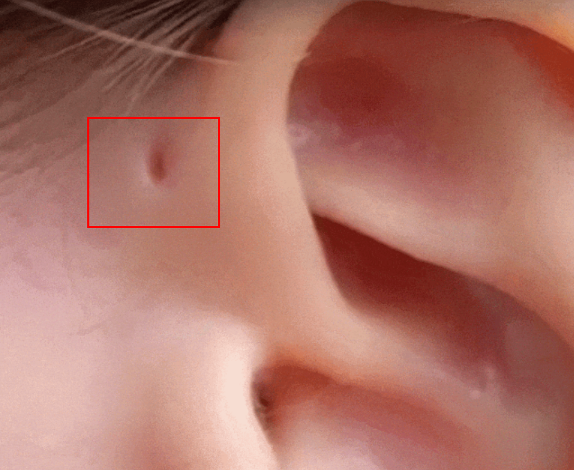 有人认为,耳朵旁边这个孔是“富贵孔”,还有人叫它“聪明孔”。但实际上,耳朵旁边的小洞在医学上称为耳前瘘管,属于先天的耳道发育畸形,有家族遗传性。如果新生儿有耳前瘘管,家长一定要重视听力筛查。