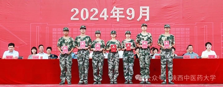 阳光讯(记者 刘金 通讯员 高丹阳 文/图)9月14日上午,陕西中医药大学在南校区田径场举行2024级新生开学典礼暨军训总结表彰大会。校党委书记蒲济生,党委副书记、校长杨晓航,党委副书记苏晓波,党委副书记、纪委书记、监察专员巨旺民,副校长杨景锋、缪峰、孙静,中国人民解放军93897部队领导出席会议。会议由杨景锋主持。