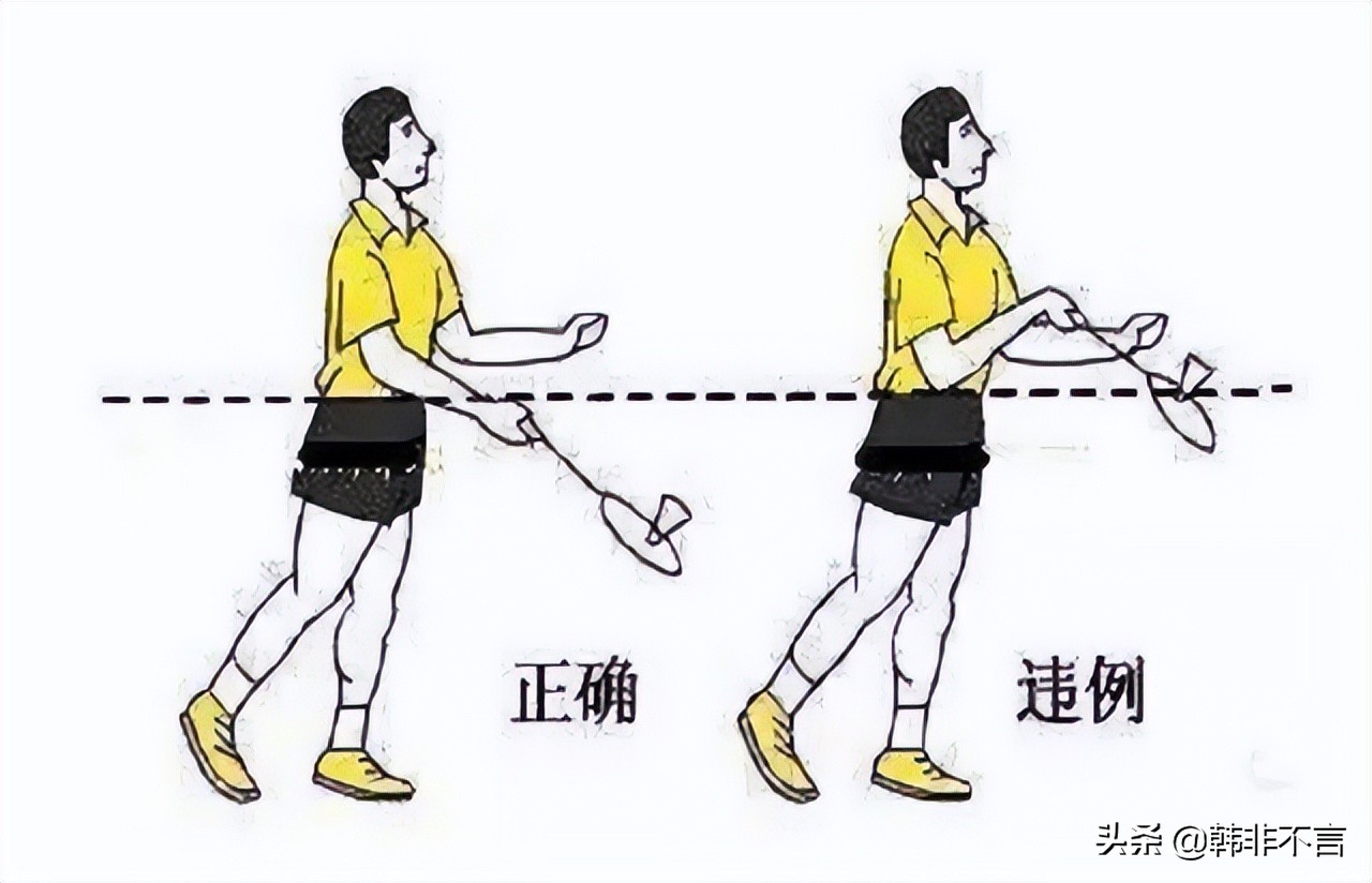 发球球拍上沿低于手