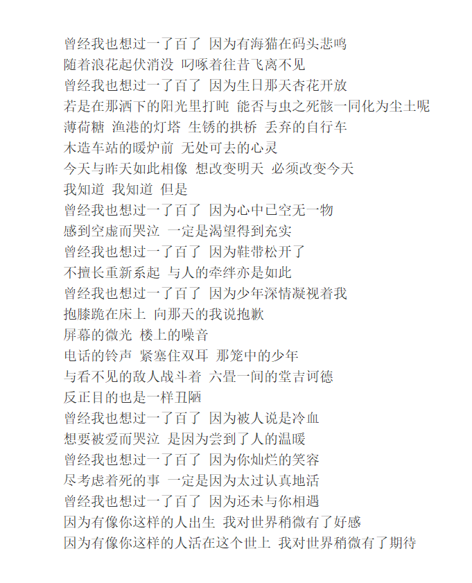曾经我也想过一了百了 因为还未与你相遇