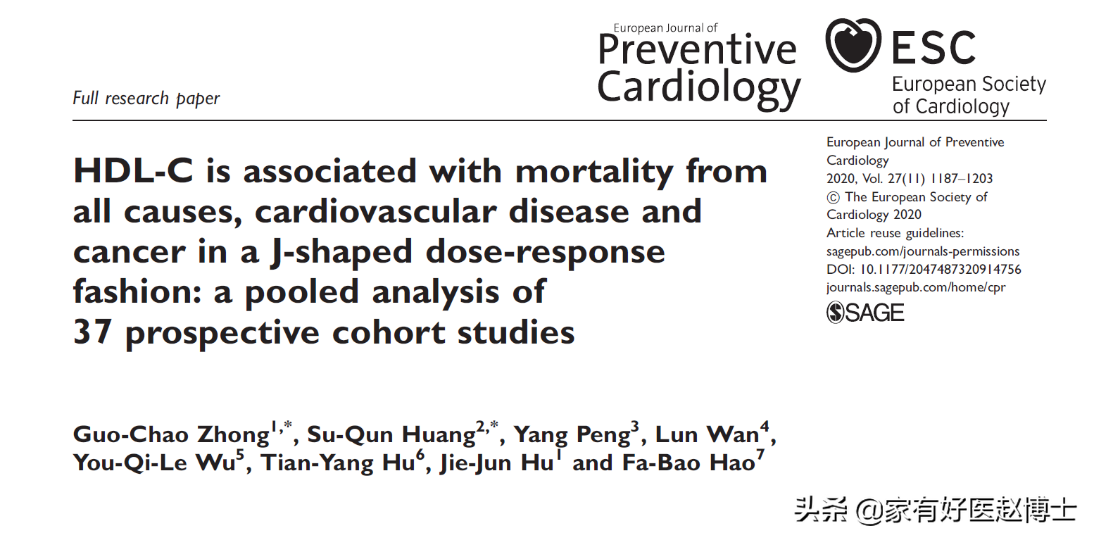 3,HDL-C is associated with mortality from all causes, cardiovascular disease and cancer in a J-shaped dose-response fashion: a pooled analysis of 37 prospective cohort studies. European Journal of Preventive Cardiology 2020, Vol. 27 1187–1203
