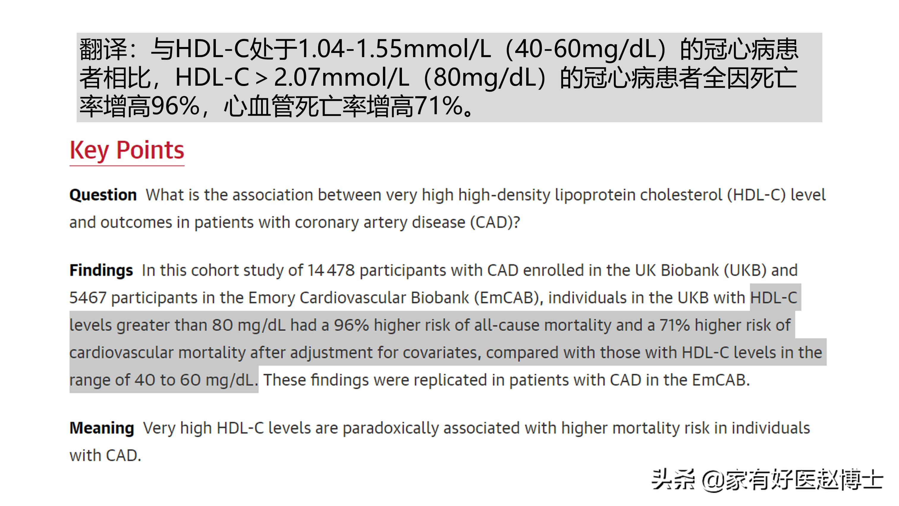 这其实从一个侧面反映出:“好胆固醇”的水平未必“越高越好”!而近年来,很多新的医学证据甚至直接指出:“好胆固醇”水平太高,会有风险!