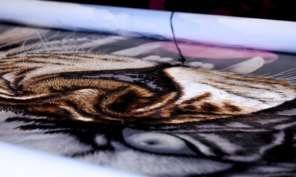 湘绣是中国四大名绣之一。湘绣艺术特色,主要表现为形象生动、逼真,质感强烈,它是以画稿为蓝本,“以针代笔”,“以线晕色”,在刻意追求画稿原貌的基础上,进行艺术再创造。故其独特技艺,尽在“施针用线”之中。湘绣针法多变,以掺针为主,并根据表现不同物象、不同部位自然纹理的不同要求,发展为70多种针法。线色万千,根据各种不同画稿的题材,运用各种不同的针法,选配各种不同色阶的绣线——丝线或绒线,凭借针法的特殊表现力和绣线的光泽作用,使绣制出来的物象,不但保存着画稿原有的笔墨神韵,而且通过刺绣工艺,增添了物象的真实性和立体感,起到了一般绘画所不及的艺术效果。以致湘绣独成一派,到清末“湘绣盛行,超越苏绣,已不沿顾绣之名。法在改蓝本、染色丝,非复故步矣”。