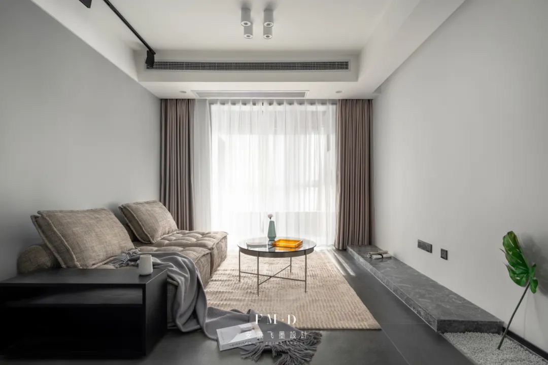 ②客厅阳台做地台休闲区设计,可作为家人互动空间。