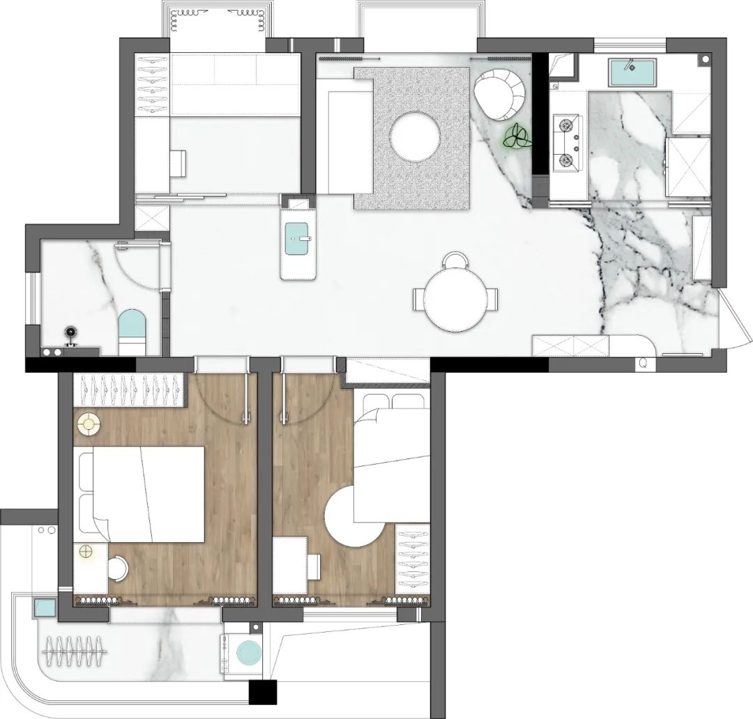 ③北次卧纳入卧室,规划衣帽间,居住舒适度更高。