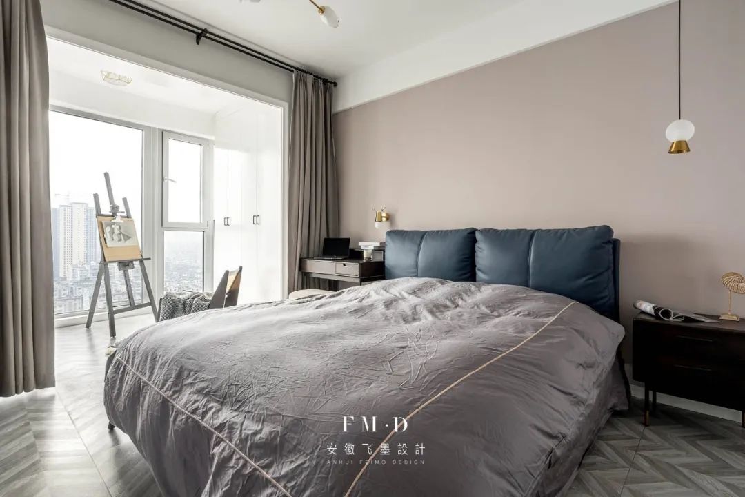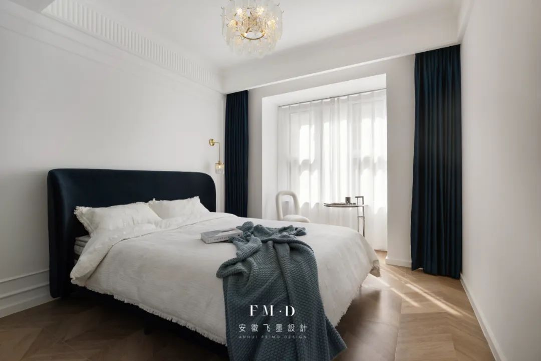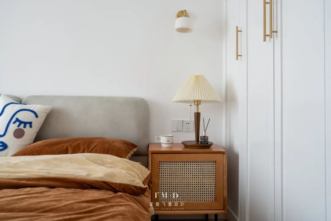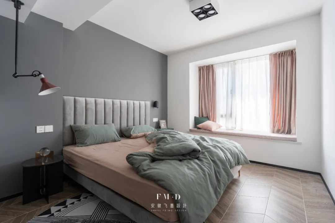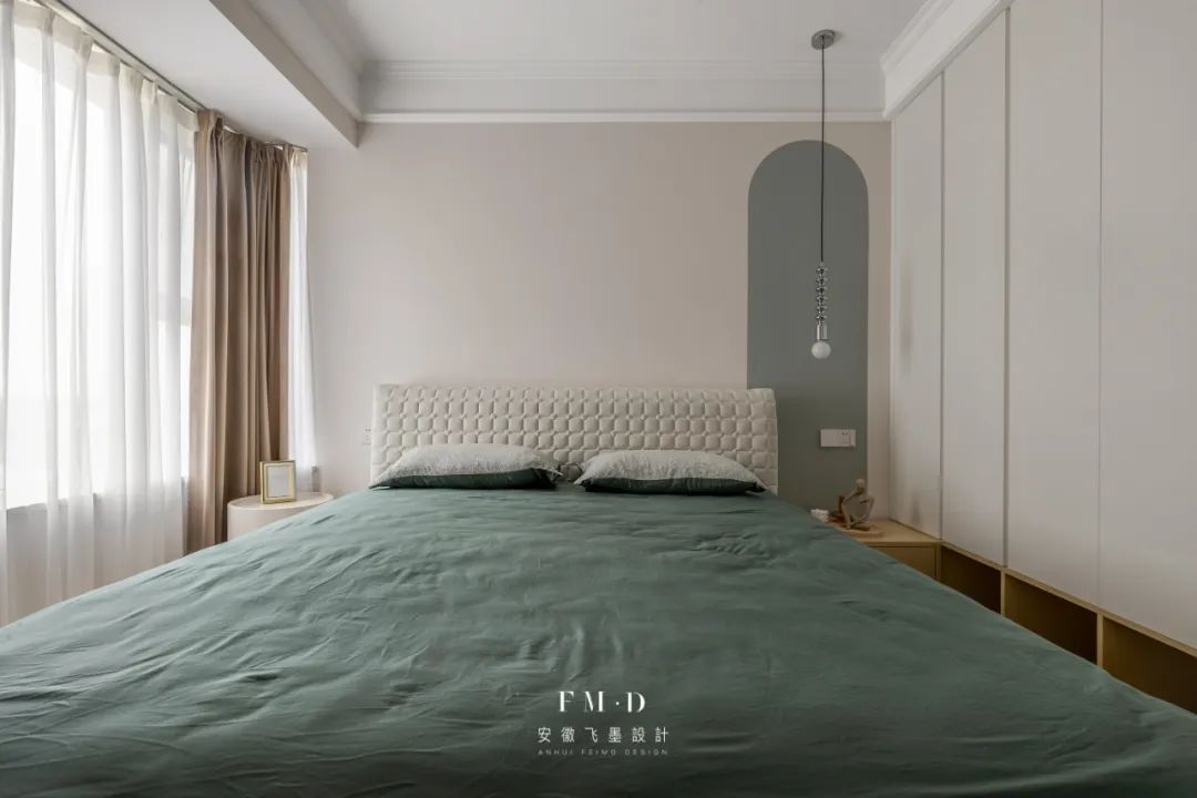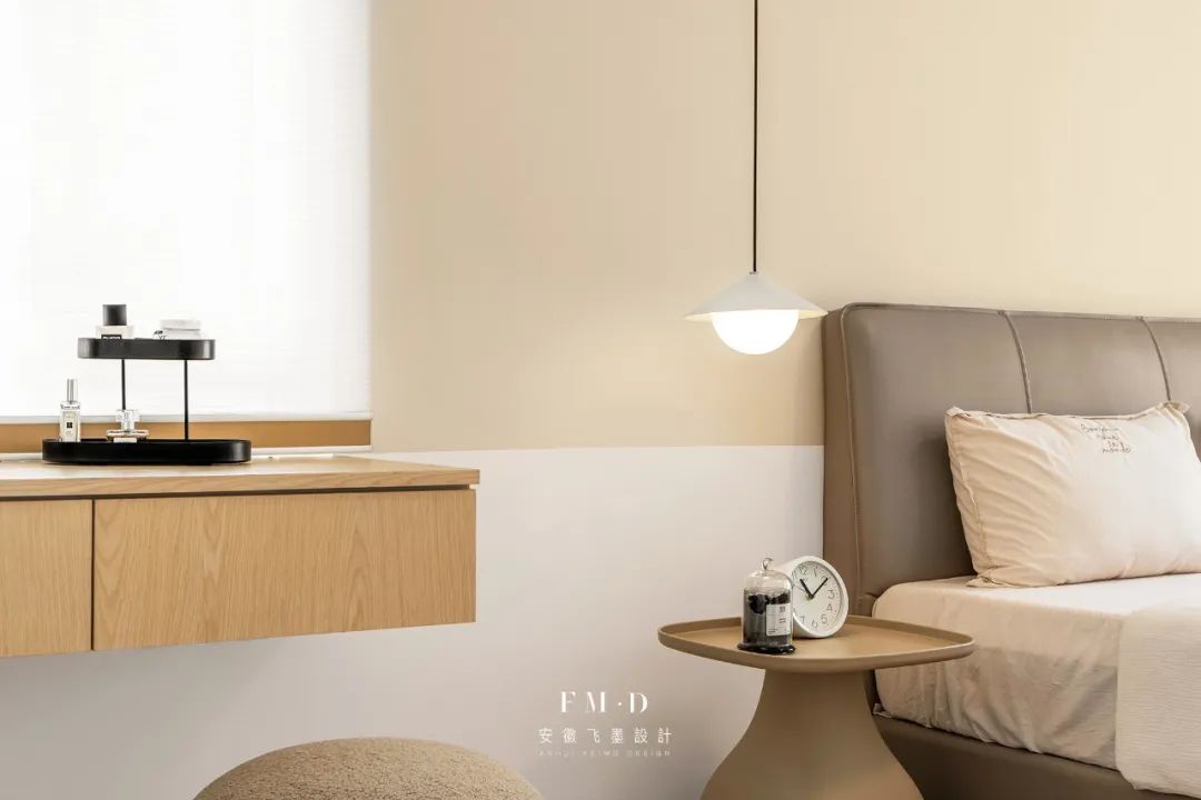 ②卧室墙面采用分色造型,设计感更强。