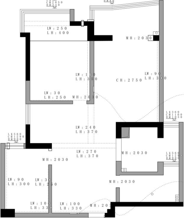 ①客餐厨面积不大,打掉所有非承重墙,规划LDK设计。