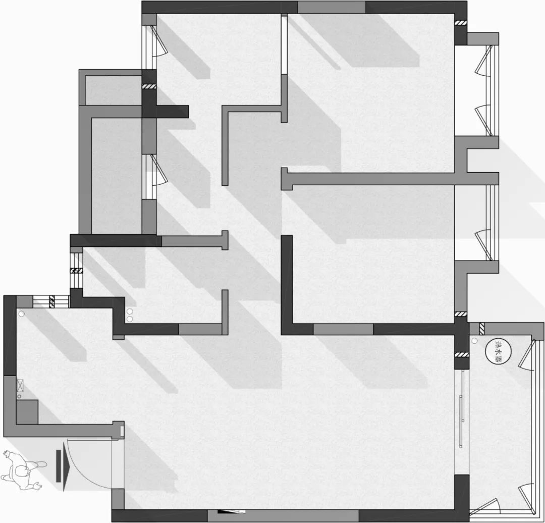 ②改动后的玄关也解决了入户门正对室内的尴尬,提升室内隐私性。