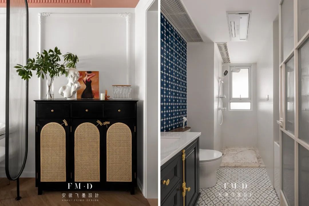 ②卫生间台盆区移至过道,提高空间利用率也可作为隔断使用。