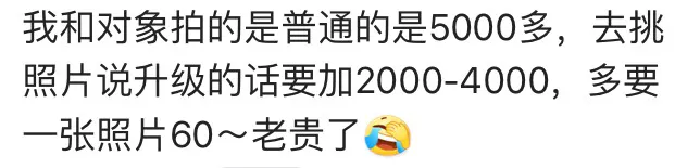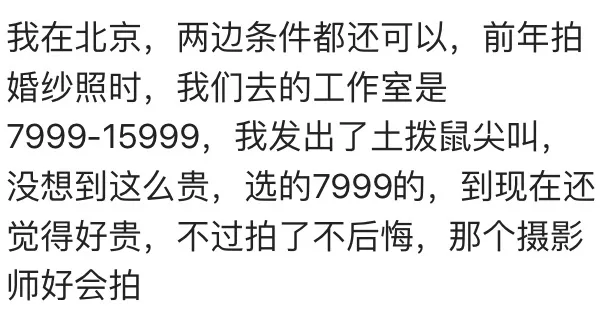 我前几天刚拍完婚纱照,我本来预算是五六千,我们这边的行情就是五六千能拍个差不多的,然后我去店里,人家都给我推荐三四千的,不过拍完确实也很好看,美滴很!!