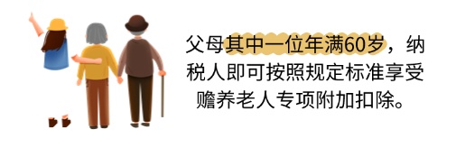 父母其中一位年满60岁,纳税人即可按照规定标准享受赡养老人专项附加扣除。