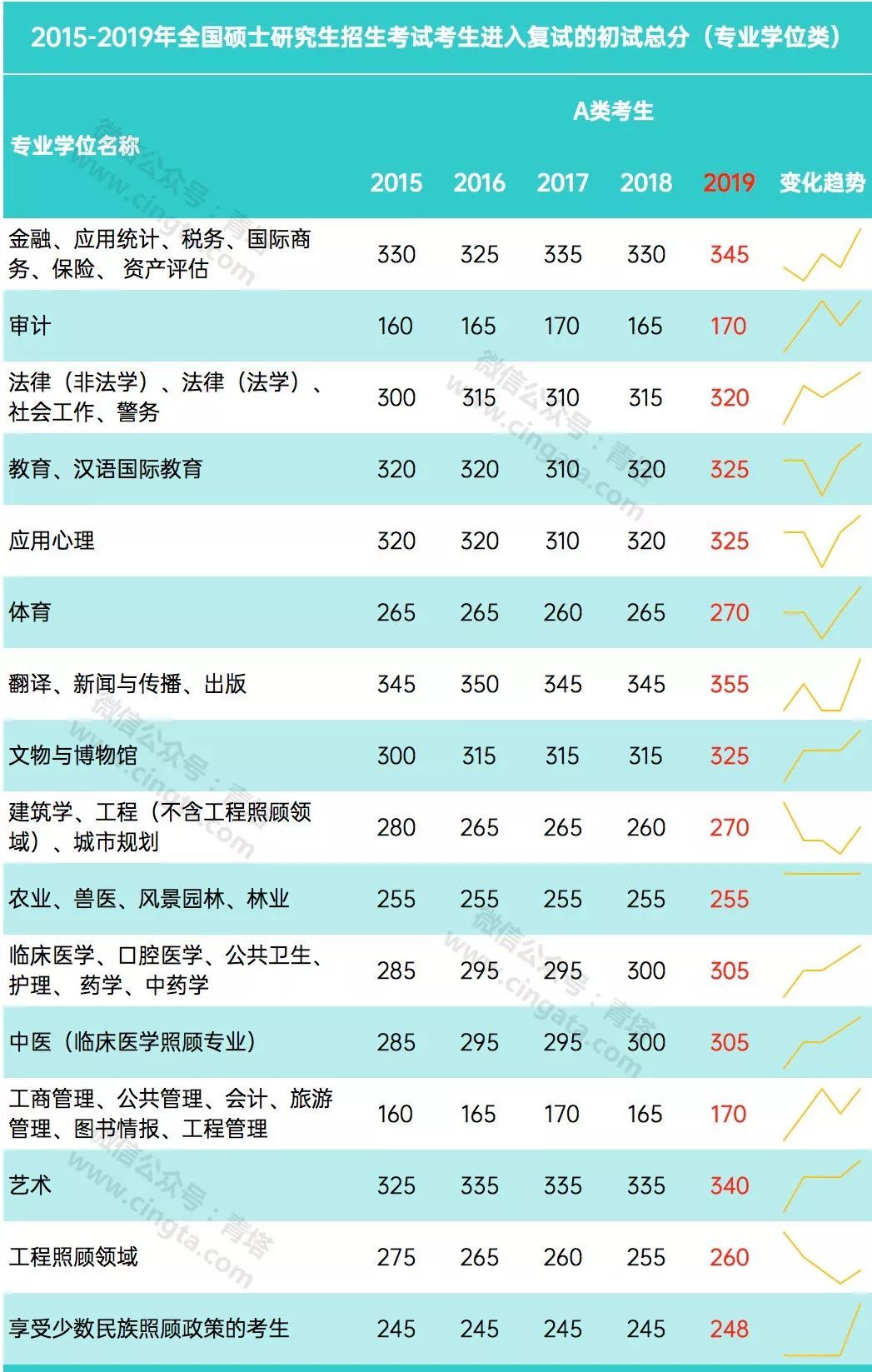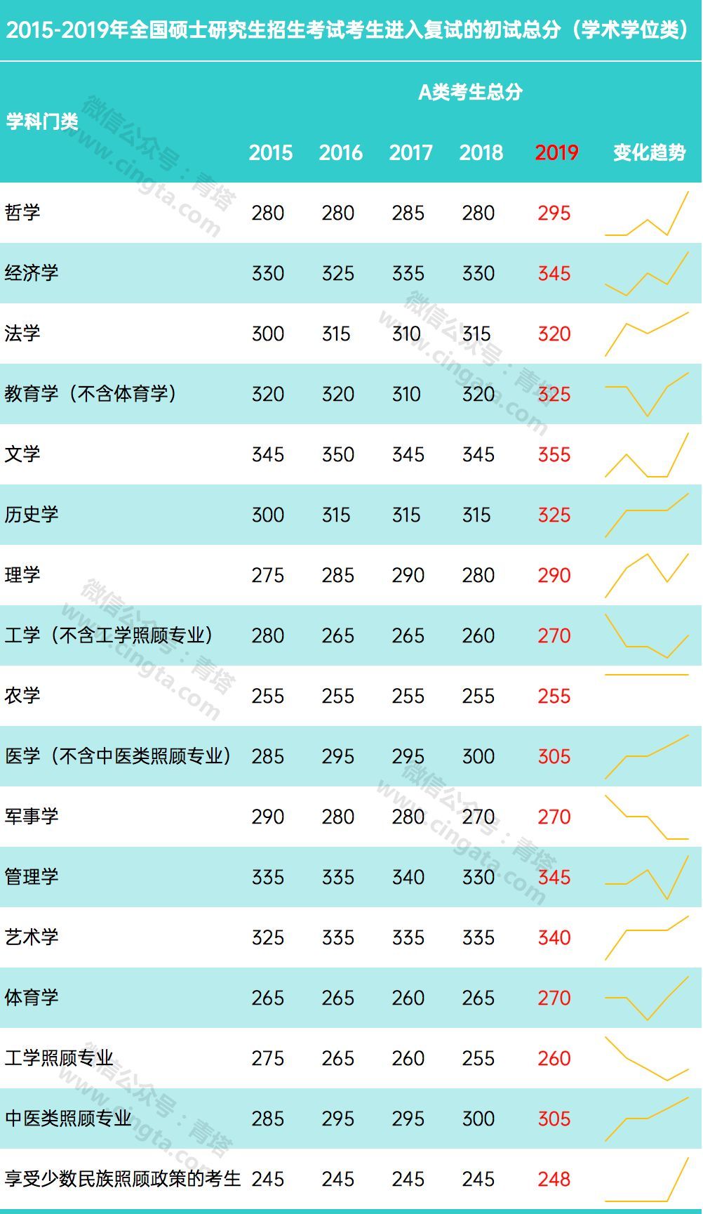 查到成绩之后大家最关心的应该就是2020年国家线和各校的复试线。以下整理了近五年国家线总分和单科数据,供考研的同学们参考。