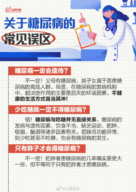 我国是全球糖尿病患病率增长最快的国家之一,约1.5亿人存在糖尿病高患病风险。糖尿病不是吃糖吃出来的病,通过饮食控制和运动,可降低糖尿病前期人群发病风险。今天,联合国糖尿病日,了解糖尿病常识为了自己和亲人的健康,收藏,提醒。