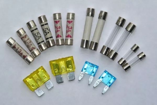 片状保险丝由塑料片与两个金属片组成,常用在汽车上,玻璃管状常用在电子产品上.