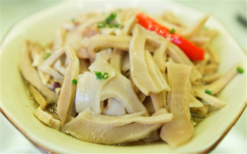 新鲜竹笋,焯水后切片用清油一炒,放盐调味,既得本味的素甜,又得盐味提鲜,成品看起来清清淡淡,吃进嘴里,细细品嚼,才知道大有乾坤。