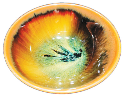 乍看没有多大区别的几件瓷器,在放大镜下却展现出不同的面貌,有的颜色单调死板,有的色彩层次分明,犹如深夜星空闪耀。“这就是天然材料古法柴烧和现代化工材料电烧的区别。”伍映方说。