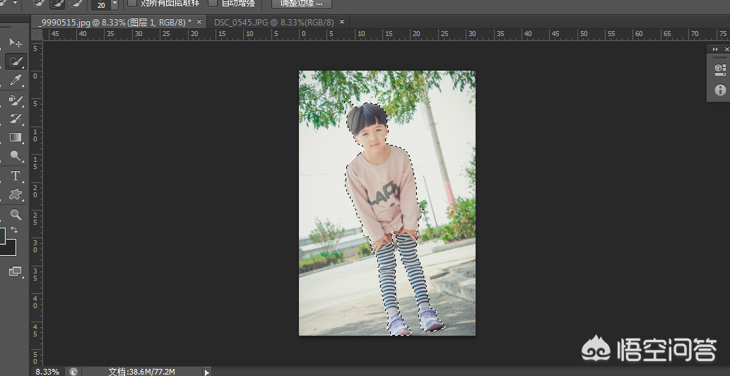 第三步、快捷键W,使用快速选择工具将人像部分,框选出来