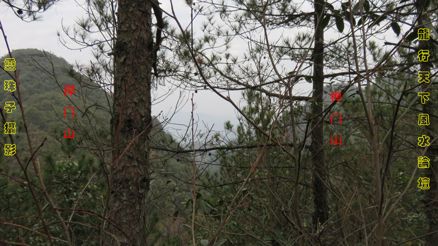 图8,朝山上树木多,在峭壁边上刚好从树缝中看到穴星和少祖山。