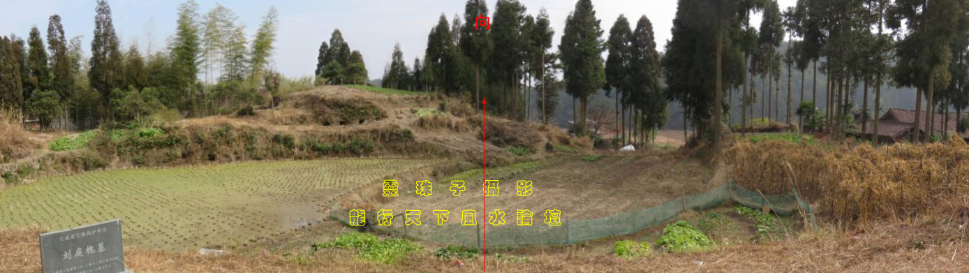 图27,测坟面大约是坐戌山296度至297、5度之间。据记载,刘伯温是在此坟葬后才出生的。