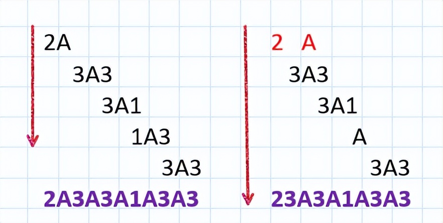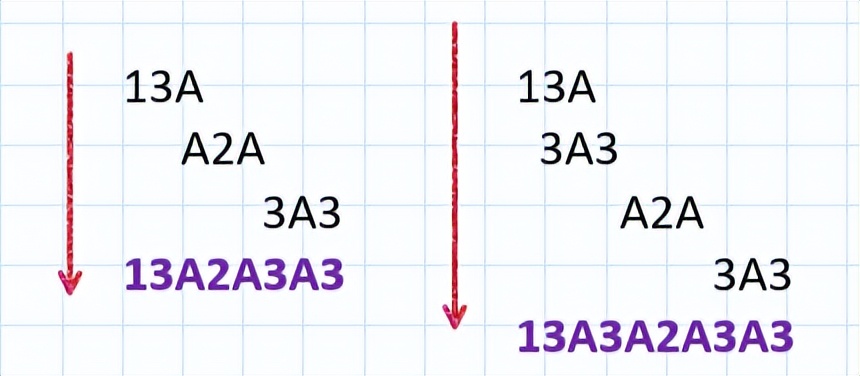 那么我们可以发现,3A3和A2A在不拆解的前提下,无论如何都无法拼接,即两者只能并列放置,形成3A3A2A,或者A2A3A3。