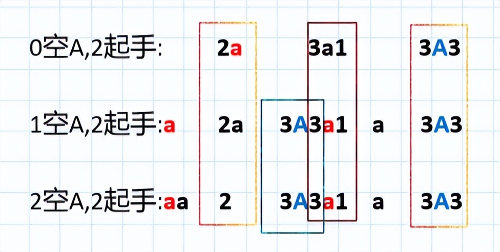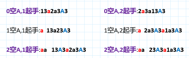 2.注意起手时不同数量的空A所带来的差异,一般情况下,仅使用0空A与2空A两种起手即可。