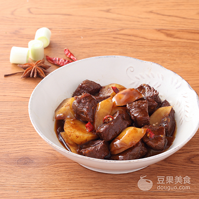 这道经典的家常菜土豆烧牛肉,以前在家的时候妈妈常常做给我吃。牛肉鲜香软烂,土豆绵糯适口,再加上晶莹油亮的酱汁,总会让我胃口大开。将它与米饭拌着吃,简直香到骨头里、于是我从妈妈那里学会了这道菜,并且找到美味的秘密,我的手艺越来越好,心里真是有些小小的骄傲呢。