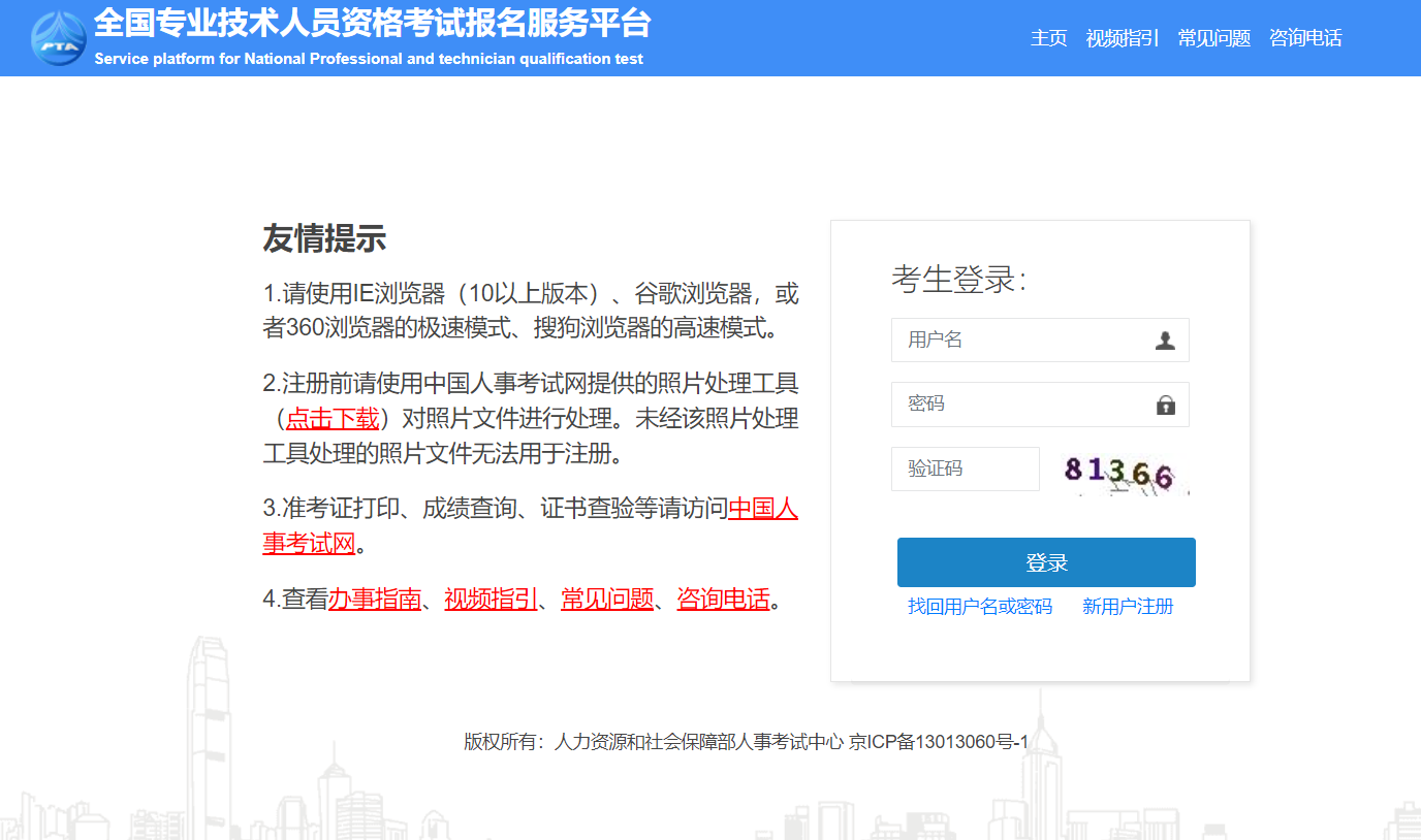 考试报名前,考生须提前通过网上报名系统完成注册和个人信息核查。考生可登录中国人事考试网,“网上报名”栏目进行个人信息注册和填报。