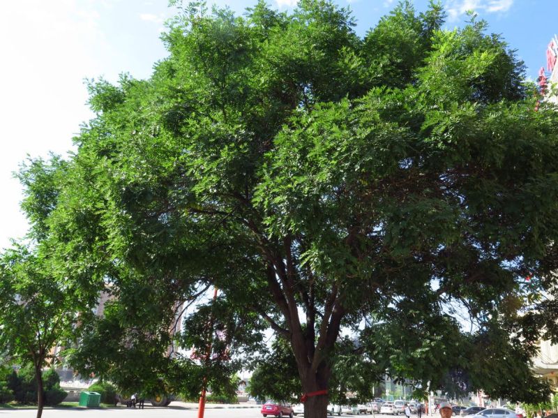 古语云“槐阴添绿”,国槐是中国庭院常用的特色树种。它枝叶茂密、绿荫如盖,又能过滤二氧化硫等有毒气体,适合在公园内、建筑外作庭荫树,是华北最好的庭荫树之一。