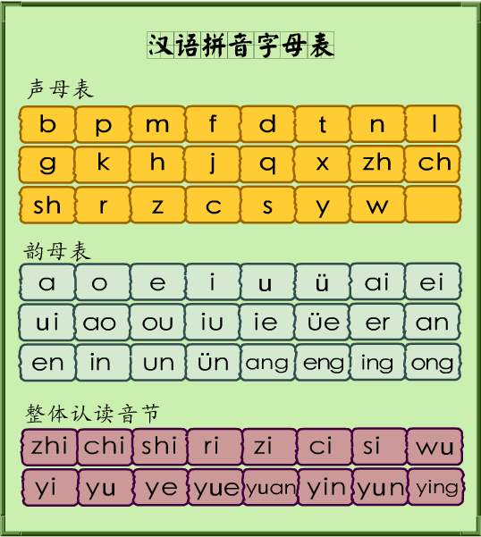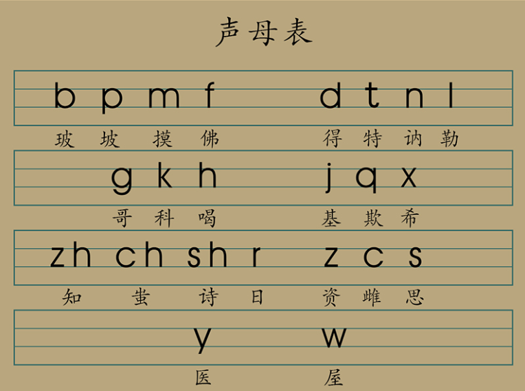 b p m f d t n l g k h j q x zh ch sh r z c s y w
