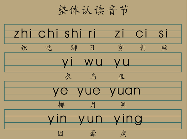 zhi chi shi ri zi ci si yi wu yu ye yue yuan yin yun ying