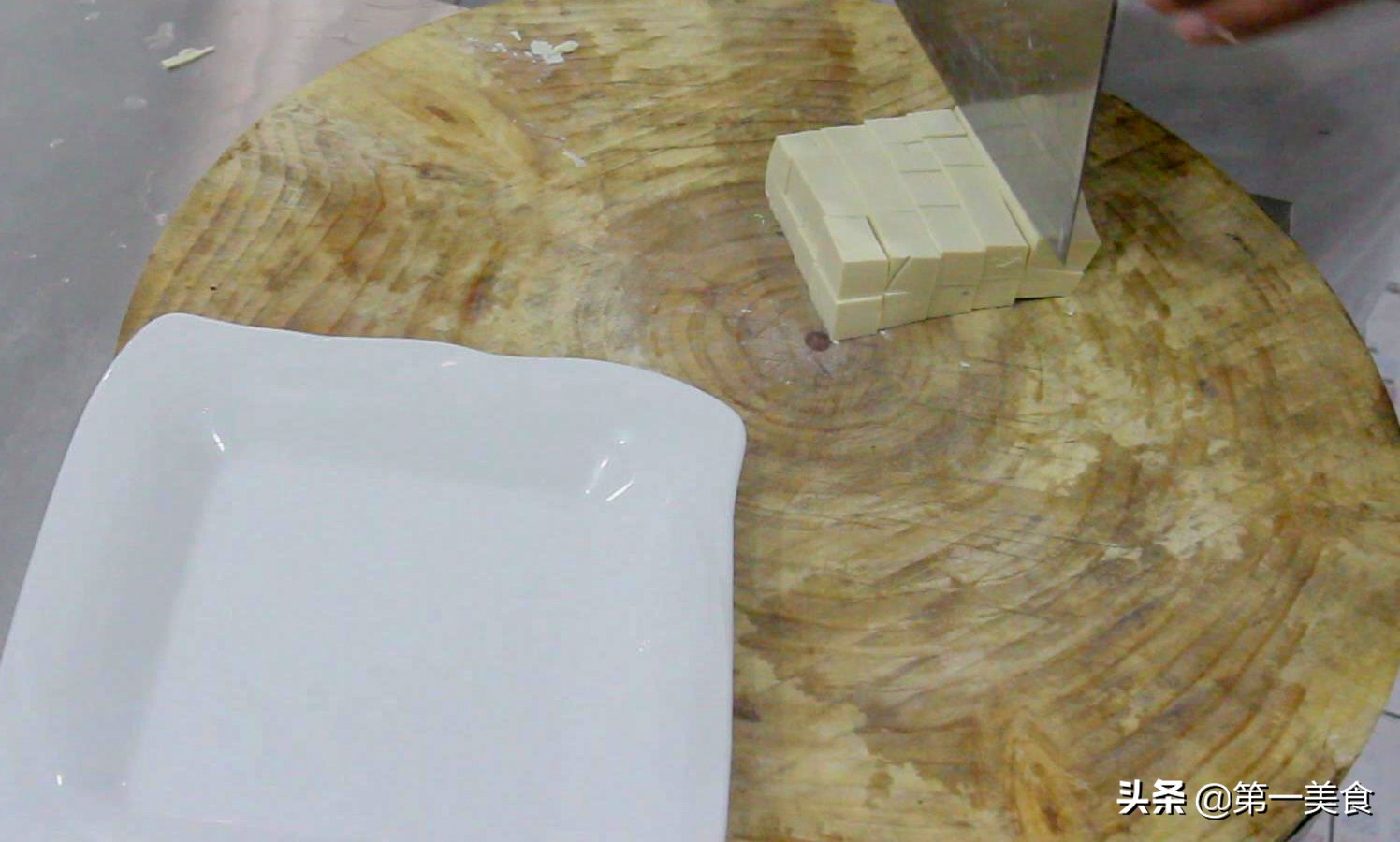 嫩豆腐一块,清洗干净以后,切成1.5厘米的豆腐丁。