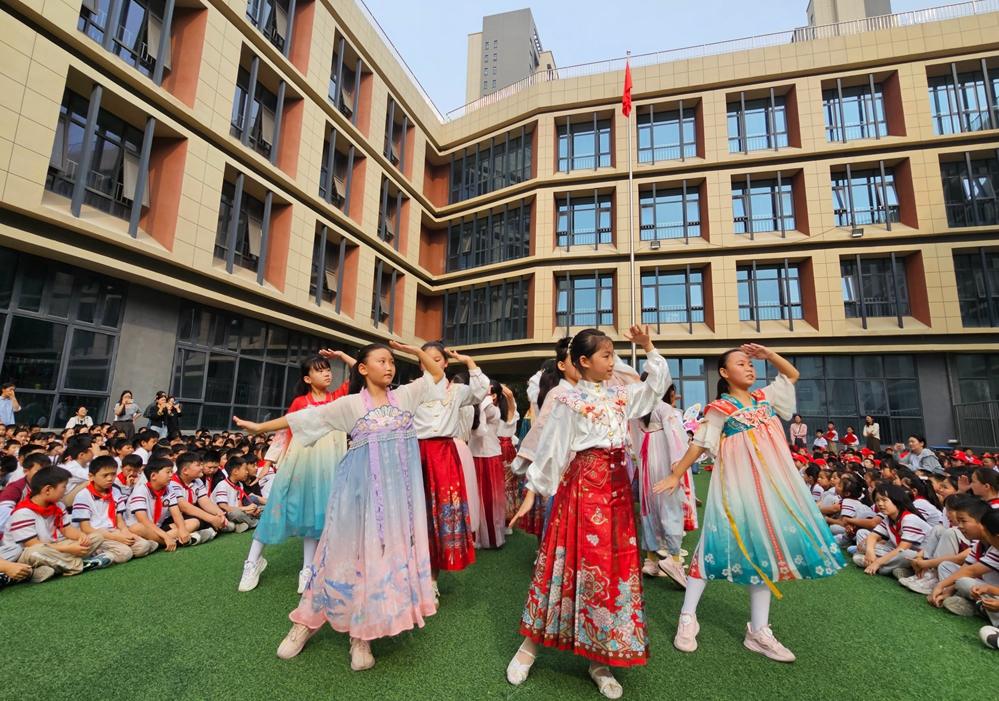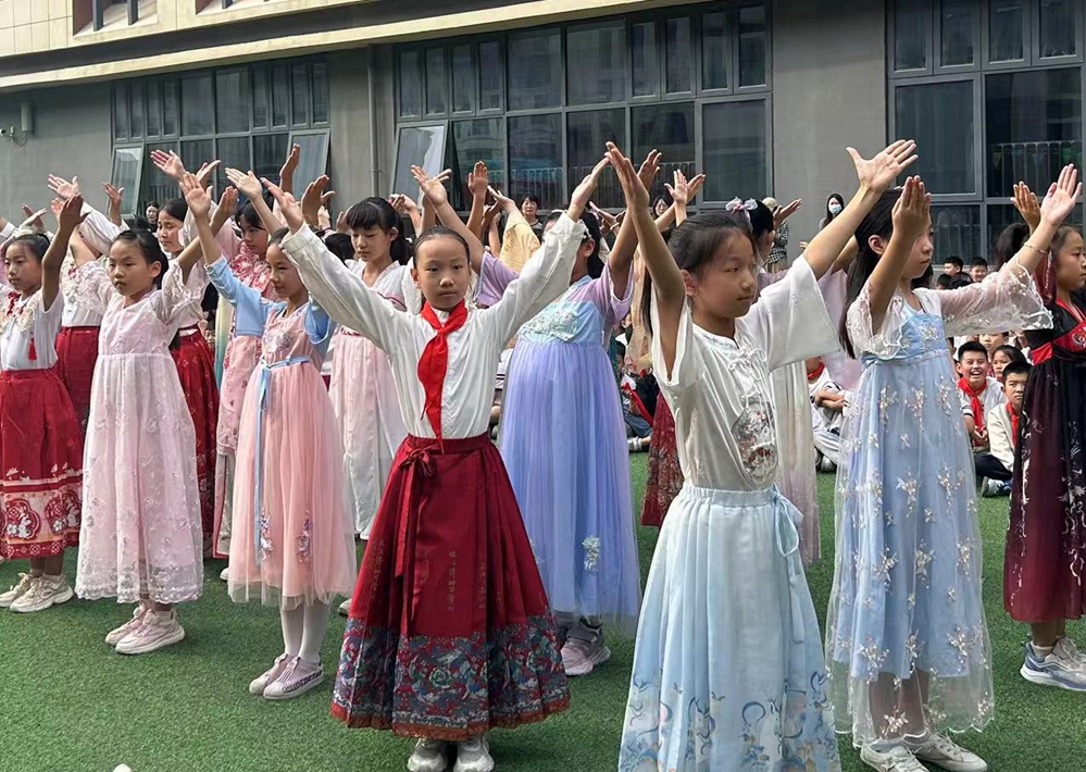 穿在身上的艺术,写在身上的历史,绚烂的民族服饰,让同学们深刻感受到中华民族多元文化的魅力;写好中国字,做好中国人,心中有梦想,未来更闪亮,每一个手势与动作都诉说着“我与祖国共成长”的故事。