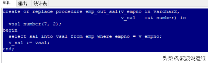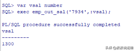 create or replace procedure emp_out_sal is vsal number; begin select sal into vsal from emp where empno = v_empno; v_sal := vsal; end;
