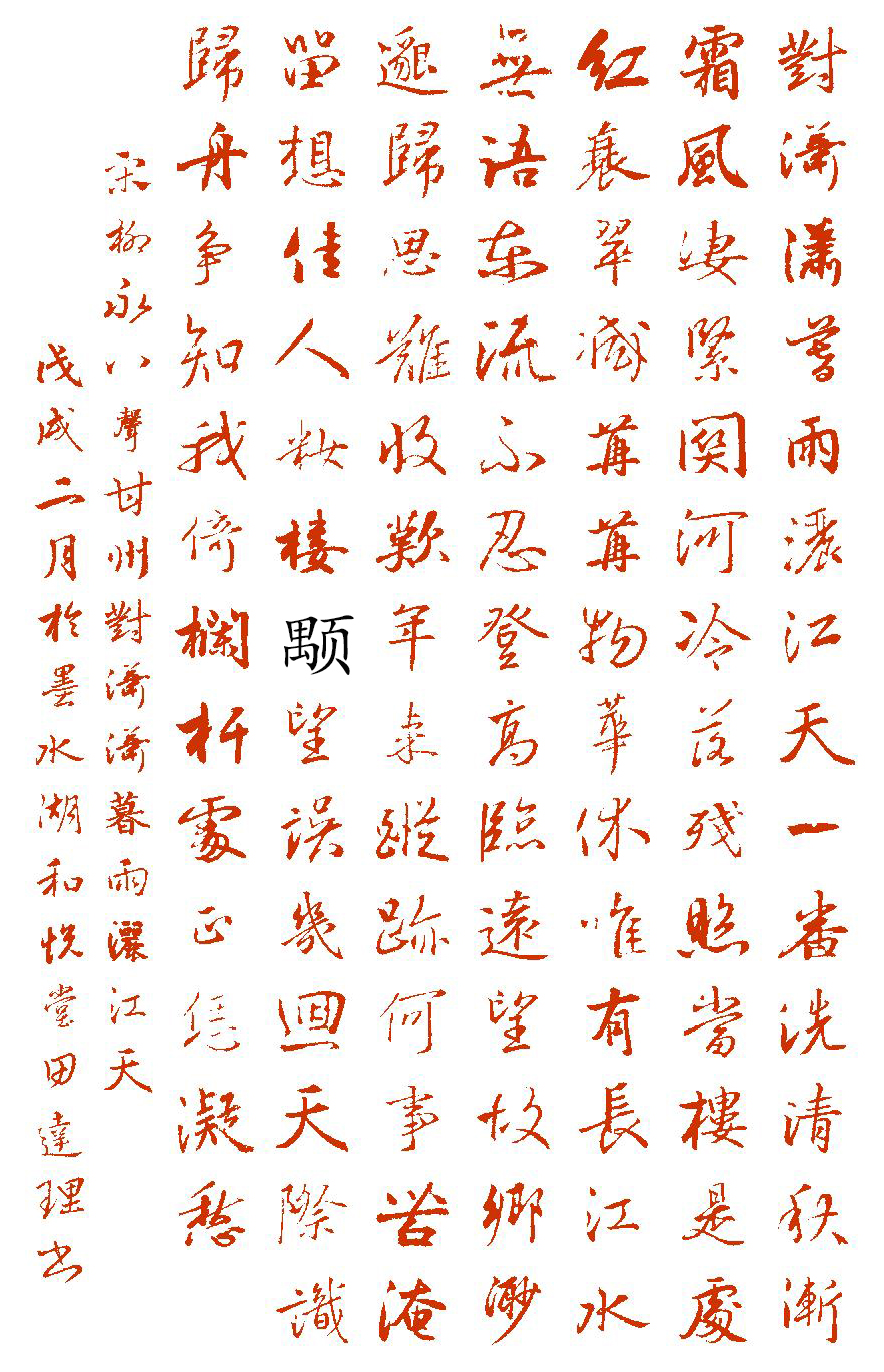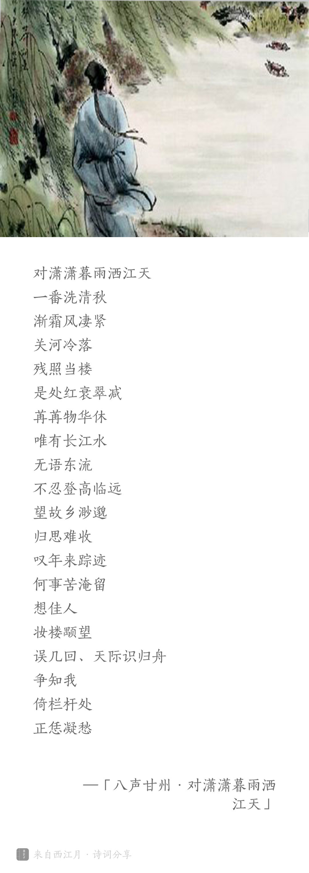 宋·柳永《八声甘州·对潇潇暮雨洒江天》(书法作品为自创,文字、图片来自网络)