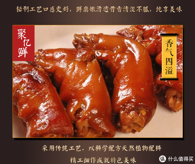孟氏趴蹄有软烂香醉、色泽细腻红润,肉烂脱骨而皮整,味鲜醇厚而鲜香的特点。成品软烂香醇、色泽细腻而红润,肉烂脱骨而皮整,味咸醇厚而鲜香。酱香绵烂,肥而不腻是老少皆宜的传统美食。