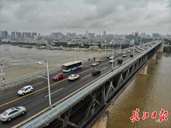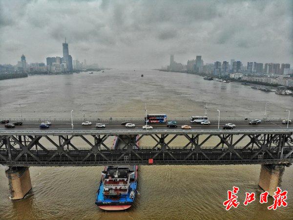 长江网7月13日讯 2020年7月13日7时许,早高峰的武汉长江大桥交通正常运行,长江两岸汛情尽收眼底。长江水文网实时监测数据显示,截至当日8时,长江汉口站水位28.76米,流量56400立方米/秒,超警戒水位1.46米。